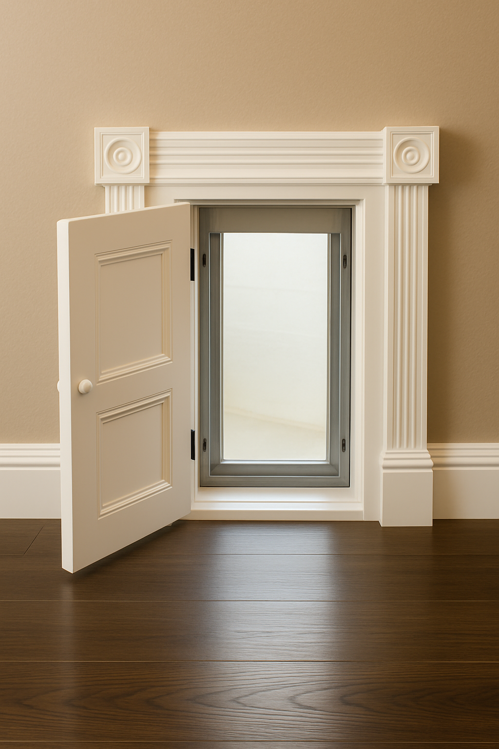 We design and fully install custom dog doors that match your home’s style - size, trim, color, and hardware, exactly how you want it.