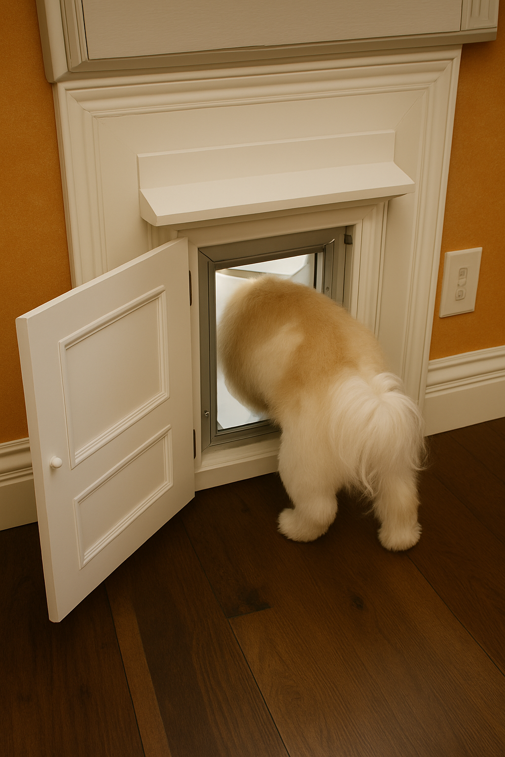 We take a basic, boring pet door and rebuild it into a luxury, built-in piece with matching trim/mantle and a clean, professional finish. We offer new installs or upgrades, in-home across the Las Vegas area.